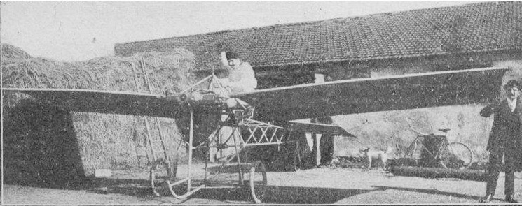 The Bénegent tractor monoplane had a triangular-section fuselage made of welded steel tubing, with the pilot seated on top. It was powered by a horizontally opposed two-cylinder water-cooled engine designed and built by the self-educated Joseph-Désiré Bénégent. The plane was tested at Courneuve outside Paris in late 1910.