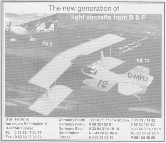FK-Lightplanes is a product of B&F Technik Vertriebs GmbH. Production of the airframes takes place in Krosno, Poland; assembly of the airframes and the final production of the aircraft in the factory in Speyer in Germany. Otto Funk (=FK) designed in 1959 on behalf of Heinkel in Speyer the metal glider Greif 1a (FK1). This was the start of a range of light aircraft developed by the Funk family.