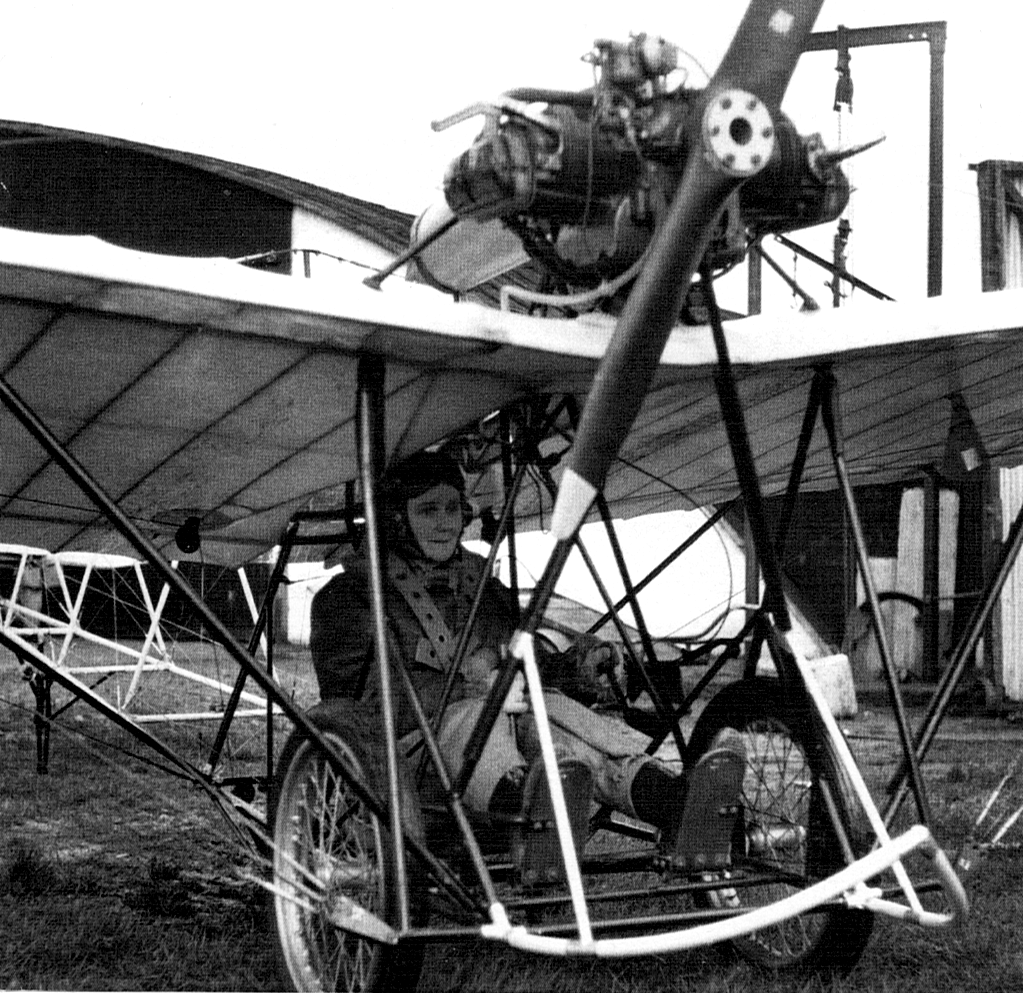 The replica of the Santos-Dumont Demoiselle was in its early form unable to leave the ground except in short hops. Extending the wingspan and fitting a more powerful Ardem 50 hp engine produced only marginal improvement. When Doug Bianchi and the Personal Planes production staff who constructed the replica consulted with Alan Wheeler, he recalled that the Demoiselle’s designer and first pilot, Alberto Santos-Dumont was a very short, slightly built man. A suitably small pilot, Joan Hughes, a wartime member of the Air Transport Auxiliary who was the Airways Flying Club chief instructor, was hired. With the reduced payload, the diminutive Demoiselle flew very well, and Hughes proved a consummate stunt flyer.