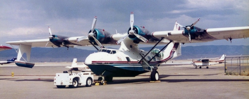 The wing attach fittings were strengthened and fuel capacity increased by adding fuel bladders to the outer wing panels. The engineer’s controls were previously moved to the cockpit by Southern California Air Service during their “Landseaair” conversion to allow operation without a Flight Engineer. Propeller control for the two Lycomings was electrical. The Lycoming’s propellers were fully reversible, distinctly improving the handling dexterity on the water. The main engine propellers were controlled by the standard mechanical linkage. The larger “Super Cat” rudder and increased power main engines (1830–94) had been installed at an earlier time. The angle of incidence of the wing and horizontal surfaces were not modified during the conversion.