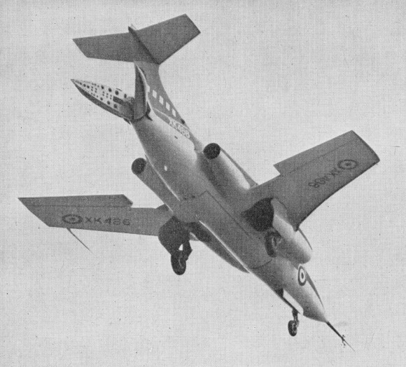 Originally the aircraft had been intended to have a retractable flight refuelling probe but this was found unsatisfactory and a re¬movable probe was standardised. On 30th April 1958 Derek Whitehead took XK486, the first Blackburn N.A.39, on its maiden flight from the R.A.E. airfield at Thurleigh, Beds. Initially the Buccaneer was powered by two D.H. Gyron Juniors.