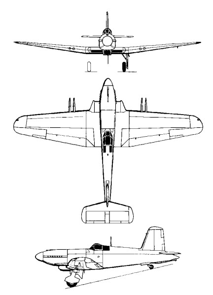 Originally designed to Specification N.11/40 as a single-seat carrier based fighter, powered by the Napier Sabre liquid-cooled engine. Owing to the unavailability of the Sabre engine, a new specification, S.8/43, was drawn up to provide for the Bristol Centaurus air-cooled engine. At the same time the requirements of the specification were broadened to include a strike role, carrying a torpedo, bombs and/or rockets.