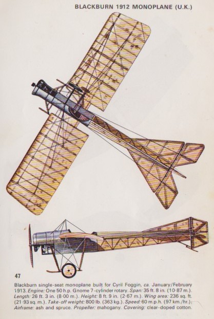 Other Blackburn Monoplanes were built for private owners and examples were shown at the Olympia Aero Shows in 1911 and 1914, and also took part in the Daily Mail sponsored Circuit of Britain Race in 1911.