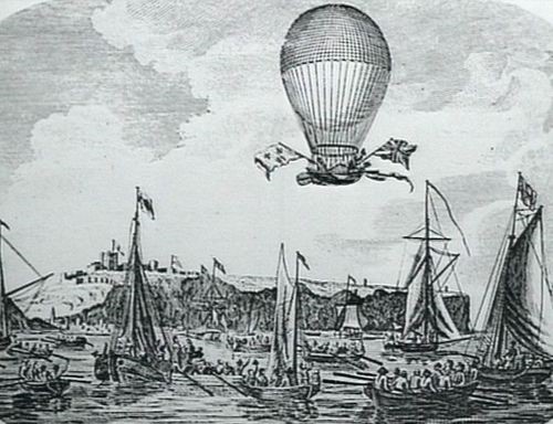 The first flight over the English Channel was on the 7th January 1785, between Dover and Guînes, in 2h25 carrying J.P.Blanchard and John Jeffries.