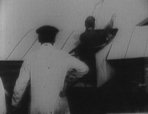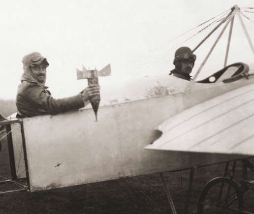 During the First Balkan War (1912–1913, Bulgarian airmen prepare to drop a bomb by hand on Adrianople (now Edirne, Turkey), from their Bleriot XI aircraft.
