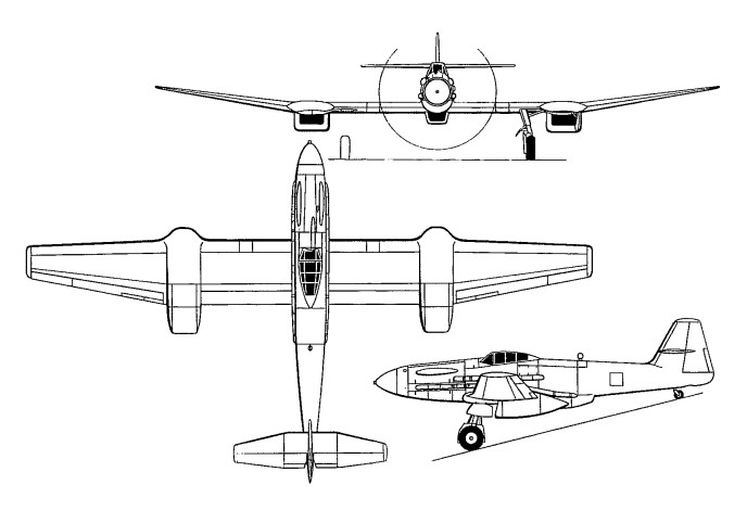 The V1 prototype first flew on 01 September 1944, and V2 in February 1945. Three prototypes were built.