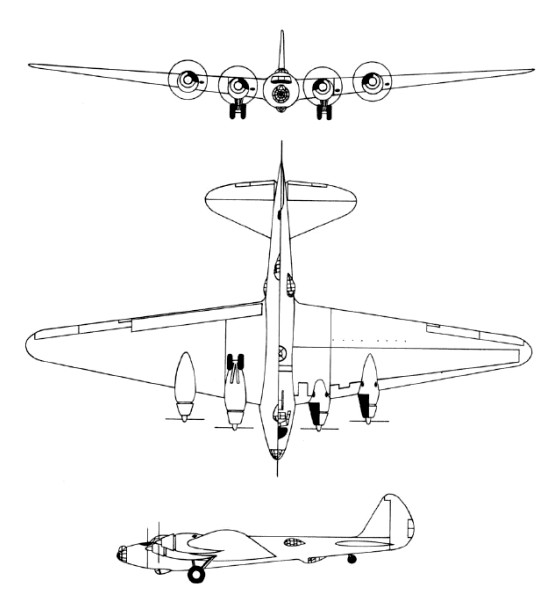 Engines: 4 x Pratt & Whitney R-1830-11 Twin Wasp Senior, 746kW