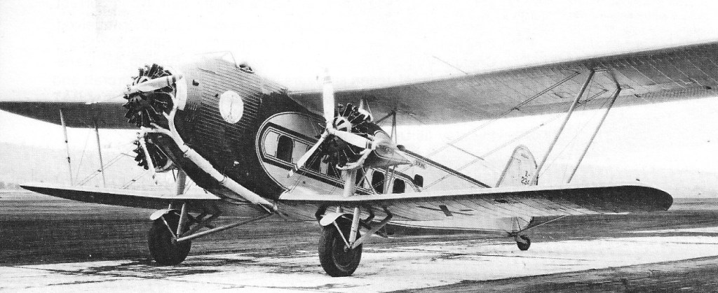 The growth of operations on Boeing Air Transport’s San Francisco-Chicago route resulted in the design and development of a purpose-designed passenger transport, the Boeing Model 80, first flown during August 1928. A large unequal-span biplane, with the lower wing of reduced chord, the Model 80 had a wing structure of wood, fabric-covered, and a fuselage and tail unit of welded steel tube, also fabric-covered. Landing gear was of fixed tailwheel type, and power was provided by three 306kW Pratt & Whitney Wasp radial engines. These were mounted in tri-motor configuration, one in the fuselage nose, and one each side of the fuselage, between the biplane wings.