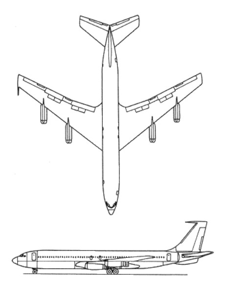 Engines: 4 x Pratt & Whitney JT3D-3 Turbofans, 80kN (18,000 lbs)