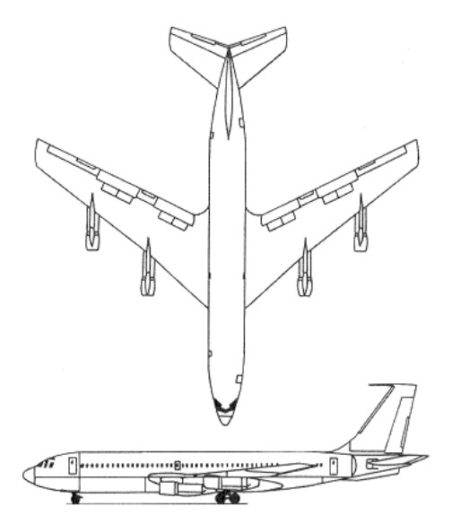 The most important aerodynamic change compared with the 707-120 is a refinement to the wing leading-edge, which increases the angle of sweepback and decreases the thickness/chord ratio, with improvement in take-off performance and cruising speed. These modifications were incorporated subsequently on the Boeing 707-120B.