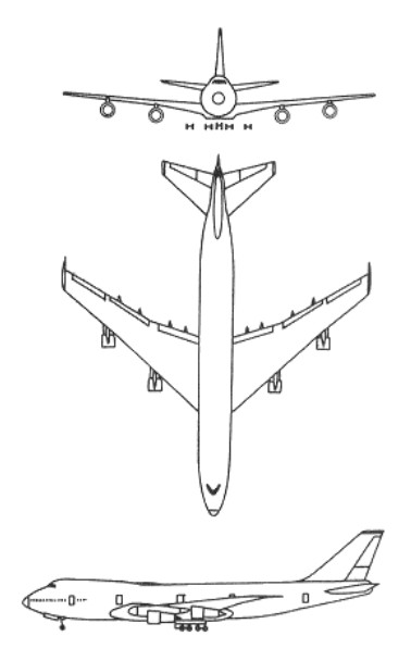 Engines 4 x 43,500 lb. (19,730 kg.) thrust Pratt & Whitney JT9D-3 turbofan.