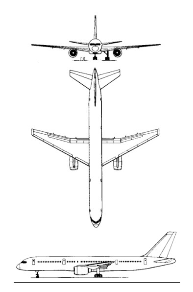 A short/medium-range airliner, having a typical capacity of 178 mixed-class, or 196 tourist-class, or a maximum high-density seating arrangement for 224 passengers, the Model 757 is a turbofan-powered airliners in the short/medium-range category, with an advanced-technology wing, and high by-pass ratio turbofan engines.