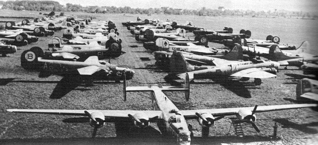 Rechlin Test Centre 3 September 1943. From left – DH Mosquito, Short Sterling 6+8 captured in Holland September 1942. B-17F 41-24585 ex-303rd Bomb Group, and early He 219 night fighter prototype