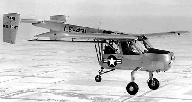The aircraft featured a high mounted monoplane wing assembly to which were affixed “flaperons”, wing devices that could double as ailerons and flaps. The two-person crew, made up of the pilot and the observer, sat in a glassed-in nacelle-type fuselage under the main span of the wings. The engine was mounted at the extreme front of the fuselage with the empennage extended out over the rear portion of the aircraft. The tail section had twin vertical tail fins. The undercarriage was a conventional “tail-dragger”, with two main landing gears and a tail wheel. All were fixed and the tail wheel was positioned under the rearward portion of the fuselage nacelle. The aircrafts size made it suitable for transport in a C-97 aircraft, that is once broken down for the journey. Should the mission call for it, the L-15 could also be fitted with twin floats for water landings.