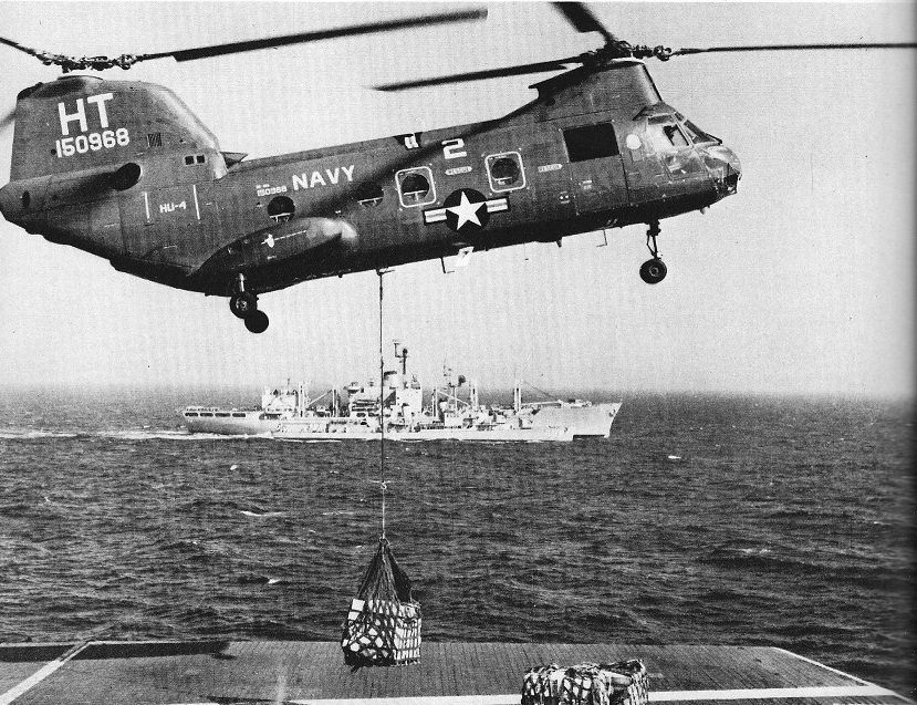 UH-46A Sea Knight: Similar to CH-46A. Ordered by US Navy for operation from AFS or AOE combat supply ships to transport supplies, ammunition and missiles as well as aviation spares to combatant vessels under way at sea. Secondary tasks include transfer of personnel and SAR. First deliveries in July 1964.