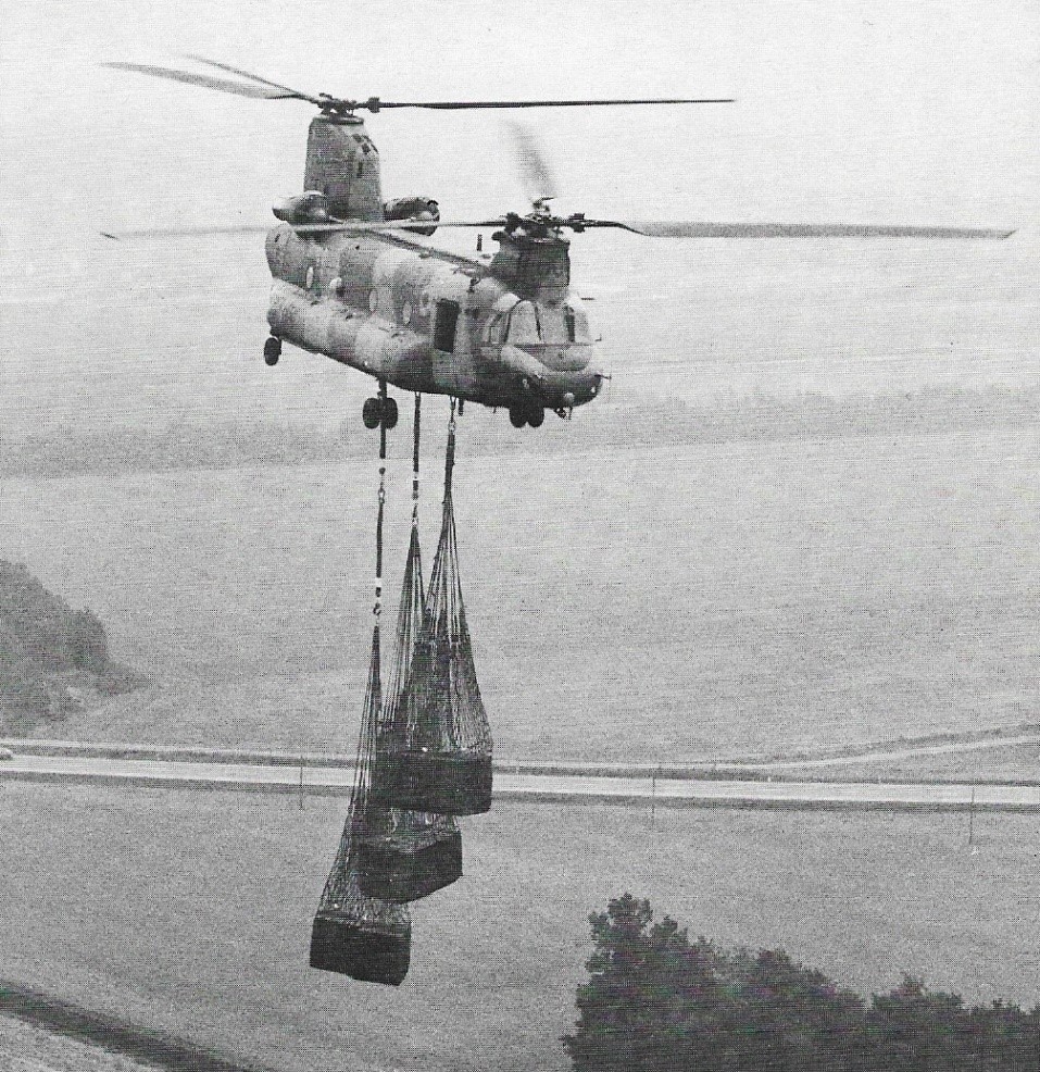 Production by Boeing Vertol of new military Chinooks became limited to orders for the Model 414, which is an international export version and the MH-47E, a Special Forces variant of the CH-47D with night/low flying avionics and an inflight-refuelling probe.