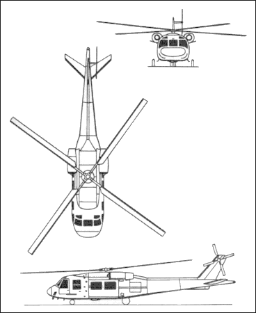 Of the three prototypes built, one was modified for the LAMPS III programme as a ‘navalized’ version of the Model 237 in the Navy’s LAMPS II competition for a ship-based multi-purpose helicopter, but again lost out to the Sikorsky H-60. It had a four-blade rotor of composite material.