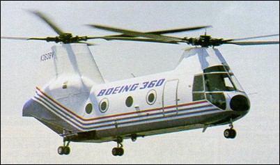 First flown on 10 June 1987, the Model 360 is a privately developed advanced technology rotorcraft, designed to research the company’s other rotorcraft programs. The helicopter features advanced aerodynamics and extensive use of composite materials including the fuselage, rotor shafts, blades and hubs. Powered by twin Avco-Lycoming AL5512 engines (4200shp) the Model 360 has a 370km/h cruise speed. The aircraft’s advanced cockpit features cathode ray tube displays, multi-function callouts, digital automatic flight control system and other improvements to reduce pilot workload. Only one model 360 was built (N360BV).