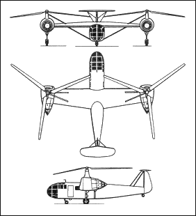Two prototypes were completed in April 1948, flying in June and September. Progress was made with measured performance, sustained (47 min) single-engine flight, autorotative landings and in eradication of various faults stemming mainly from vibration was achieved. One problem was lack of wing lift resulting from incidence setting, causing the rotors to stall at high forward speeds. A further snag was hydraulic leaks difficult to rectify. On 13 Decemeber 1948 first machine shed a blade from the right rotor, killing Ponomaryov and I.G.Nilus.