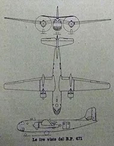 As part of its efforts to get back into aircraft manufacturing following the war, Breda commissioned Mario Pittoni to develop a twin-engine medium transport designated the Breda-Pittoni B.P.471. The prototype first flew in 1950. It was an all-metal twin-engine monoplane of stressed-skin construction. It had a retractable tricycle undercarriage and wings were of an inverted-gull configuration, this allowed the main landing gear to be short and light. The cabin had room for 18-passengers or freight. The company proposed many uses for the aircraft including a civil airliner and freighter, military navigation trainer or utility freighter. With no interest from buyers the prototype was operated by the Italian Air Ministry as a staff transport until retired in 1954.