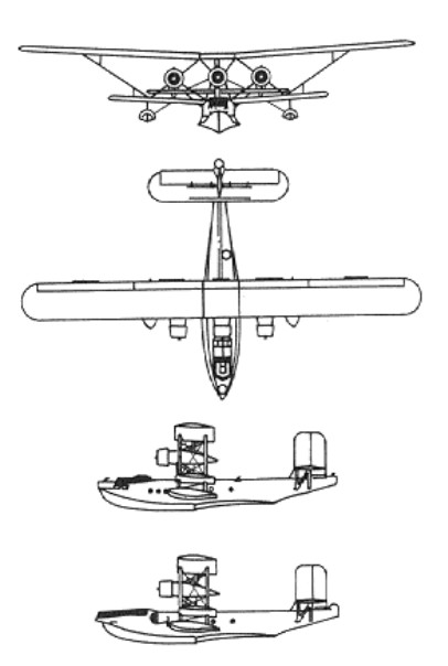 The Bre.521 was of all-metal construction with stabilising floats strut-mounted under the lower wings, a strut-braced empennage and three tractor engines located between the biplane wings.