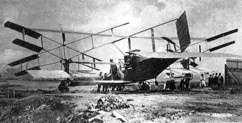 In 1908 the Breguet-Richet collaboration produced a No.2 Gyroplane, powered by a 55hp Renault engine and having two forward-tilting 2-blade rotors with a diameter of 7.85m and, in addition, fixed wings giving an extra 50sq.m of lifting surface.