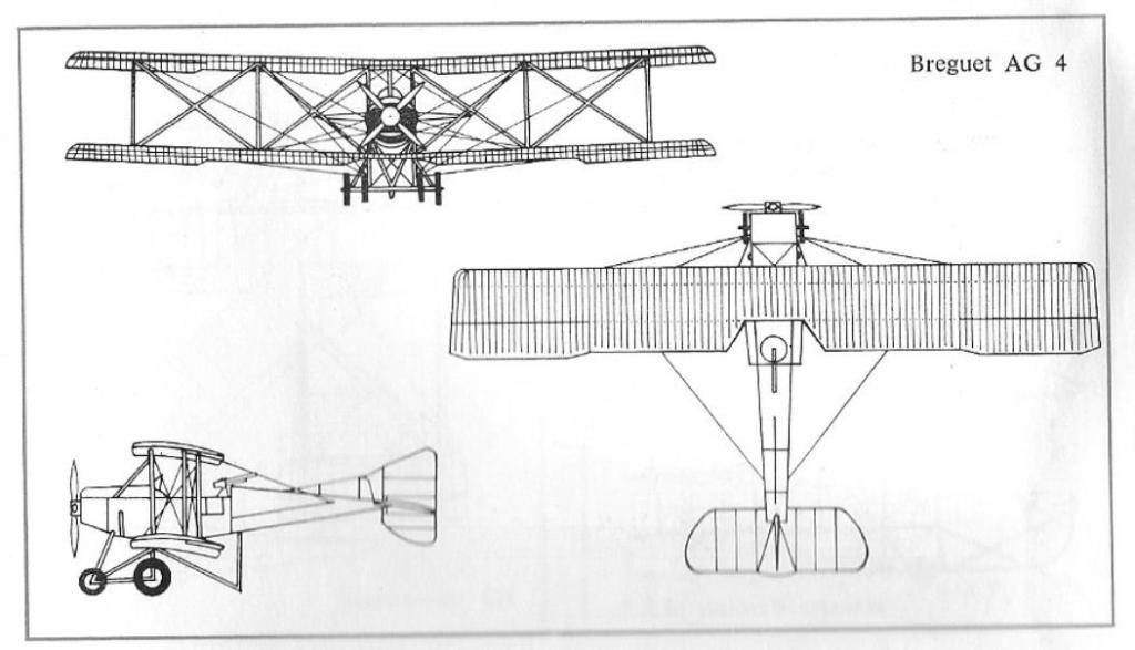 Just before the outbreak of the War, Breguet had started 2 new aircraft and projected a third. The A-G.4 was a 160 Gnome tractor; the A-U.3 was a 200 hp Canton-Unne tractor, and B-U.3 was a 200 hp Canton-Unne pusher (the A and B now used to distinguish similarly-powered machines only.)