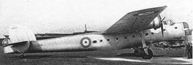 The prototype first flew on 23 June 1935 with Pegasus X radials driving fixed-pitch propellers and Bombay construction was transferred to Short & Harland in Northern Ireland and the first of 50 Bombay Mk I production aircraft flew in March 1939 with variable-pitch propellers.