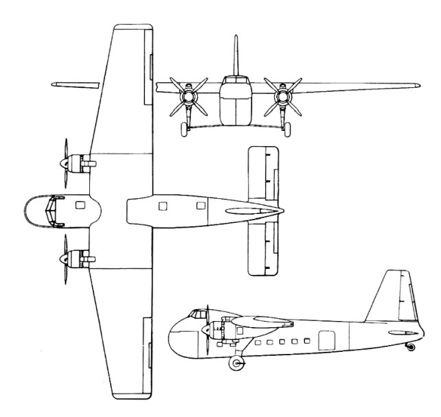 The first of the two prototypes flew on 2 December 1945, by which time it was too late to see service during World War II. But surveys had shown that there was a genuine need for a similar aircraft for post-war commercial services and so the Freighter and Wayfarer were put into production, with nose-doors for loading freight or mixed passenger/freight-carrying and without nose-doors but seating for 36 passengers respectively.