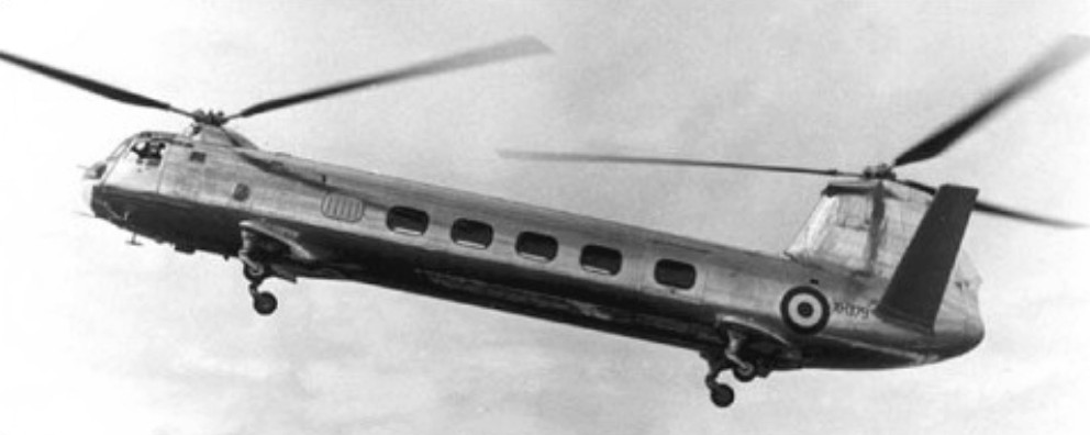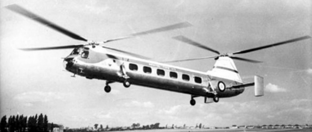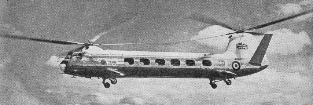 The first, G-ALBN, made its maiden flight on 3 January 1952, after some eight months of ground trials and tethered flights. It was Britain’s first tandem-rotor helicopter design, and in this early form was powered by two 575hp Alvis Leonides 73 piston engines and could carry ten passengers. In 1953 this machine was handed over to the Admiralty for Naval trials. Trials were carried out with this aircraft in 1953, from the aircraft carrier HMS Eagle.