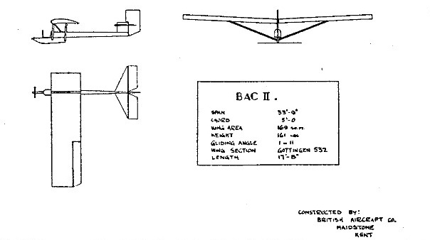 The 1930 B.A.C. II was also a primary, but instead of an open girder-type frame, it had a box spar fuselage, with a strut braced wing.