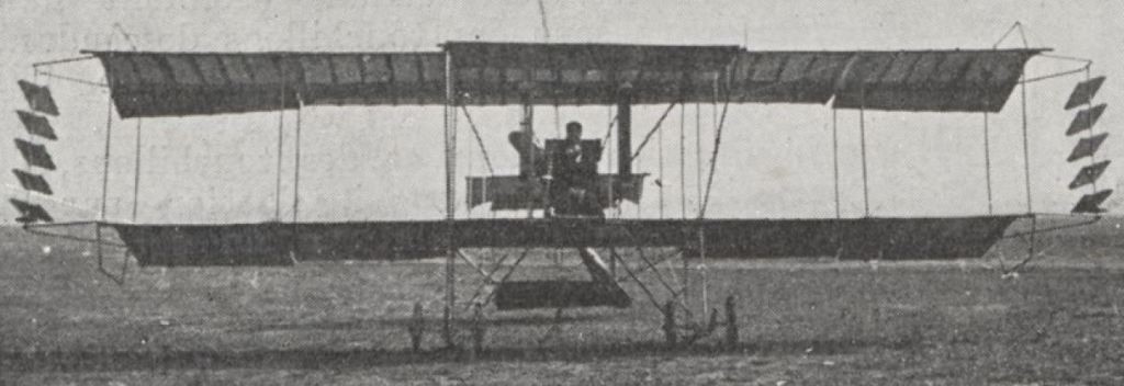 A standard Farman with the ailerons locked (otherwise they would be hanging down on stationary plane) and replaced by a system of five stabilizing surfaces at each wing tip, invented by Boleslaw Bronislawski, a Polish doctor of science working in France. The plane was tested at Port-Aviation in late 1911 by Florentin Champel, who might also have been the owner of the Farman.