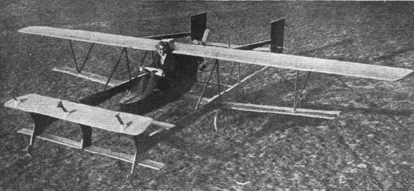 Among the machines entered in the Rhön competition in Germany in 1921 was a canard-type glider, designed and built by Friedrich W. Budig. It is a sesquiplan: in fact, the lower wing is of smaller span and chord than the main wing. The canard stabilizer in the front, in two parts: the main part serving for automatic longitudinal stabilization, and behind the latter, a conventional flap for controlling the attitude, actuated by the pilot. On both versions, there is also a horizontal plane at the rear, of very small surface, which seems to be fixed.