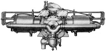 The 1910 Call E-1 /OL-295 was a 45-50hp, 296.31ci two-cylinder, horizontally opposed, water cooled aero engine. The dry weight was 135 lb.