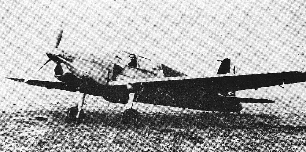 The Caproni Ca 355 Tuffo was flown for the first time in January 1941. Powered by an 850 hp Issotta-Fraschini Delta IV engine and possessing an undercarriage based on that of the Curtiss P-40, The Tuffo carried its 1100 lb bomb on an articulated rack. Flight testing was successful but no production orders were placed and only the sole prototype was built.