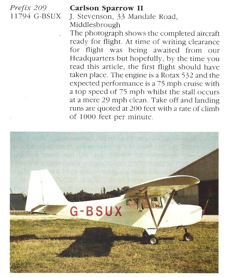Carlson Aircraft Sparrow Gallery 13/01/2024Terry Back to Carlson Aircraft Sparrow Share this: Share on X (Opens in new window) X Share on Facebook (Opens in new window) Facebook Like Loading... Related