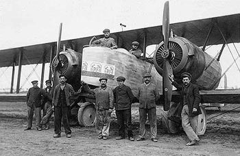 Very soon after the war some C.23s not used by the French Air Force were modified to carry twelve passengers in an open cockpit formed by an opening between the cockpit and mid-upper gunner’s position. On 10 February 1919 one made the first passenger flight between Paris and Brussels, carrying five passengers tightly packed together in an open cockpit. One C.23, designated C.23 bis, was modified to carry fifteen passengers internally, flying between Paris and London.