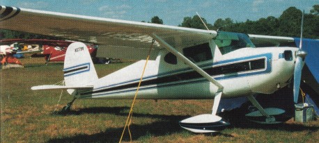 The Cessna Model 120 prototype, first flown on 28 June 1945, was a two-seat cabin monoplane with a strut-braced high-set wing. The structure was all-metal, except for fabric-covered wings, the landing gear was of fixed tailwheel type introducing cantilever spring steel main units, and the enclosed cabin provided two seats side-by-side and dual controls as standard. Powerplant a 80 hp / 63kW Continental engine, and the higher power of this unit by comparison with competing types, plus a low price tag, ensured that Cessna gained an unexpectedly large measure of sales success. New for Cessna were the all-metal fuselage and spring steel undercarriage designed by Steve Wittman of EAA fame. The wing was fabric covered and featured rounded wingtips.