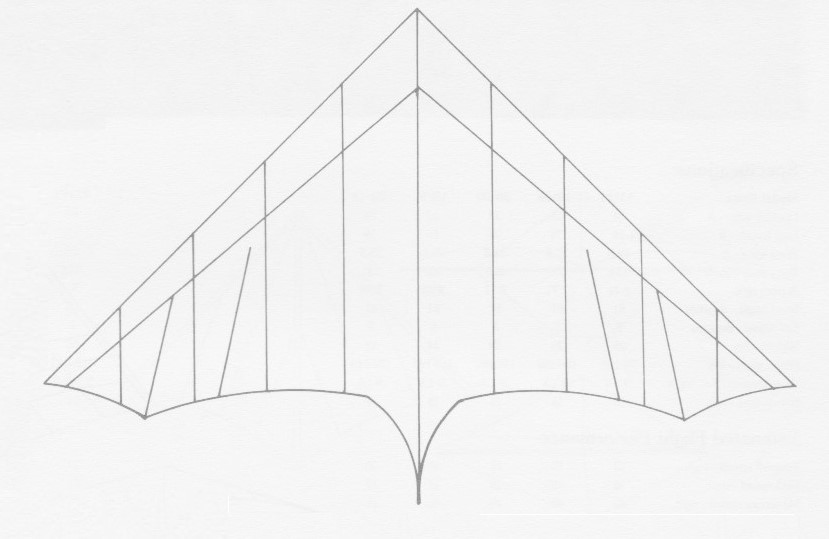 The sail is Howe & Bainbridge 3.8oz stabilised dacron in eleven colours combination. 12in leading edge pockets tapered to 6in at the wing tips.
