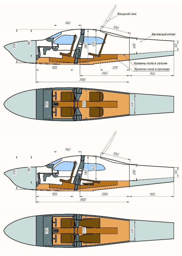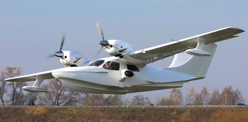 All L-4 variants have the same layout and all are largely built of composite materials. They are high-wing monoplanes with twin engines mounted close to the fuselage, on top of the wing. The wings have straight taper on both edges and almost square tips. The L-4 has a pair of flaps on each wing. Its hull has two steps and there are small winglets at waterlevel just aft of the trailing edge. The cabin extends from below the leading edge rearwards to the winglets. Fixed floats under the wings stabilize the L-4 on water; it is operable with waves to 400 mm (15 in) high.