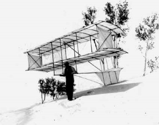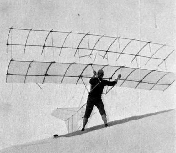 The photographed above is with Chanute during its extensive testing by Avery from the dunes on the shores of Lake Michigan at Miller Beach, Indiana, near Chicago in September of 1896; the Katydid was so named because of its insect-like appearance and made some two hundred glides that summer.