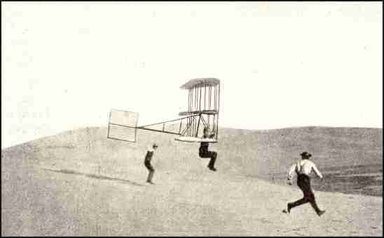 The regulating mechanism took care of the equilibrium fore and aft and diminished the effect of the side wind gusts which were then easily overcome by slight side movements of the operator. Towards the last amateurs were permitted to try it under instructions. They made fair glides in safety. One or two cruises by newspaper reporters, and another by a novice, who was picked up by the wind and raised some forty feet into the air, but who landed almost in his tracks as gently as if he had only fallen from the height of a chair.