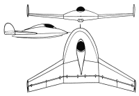 The wing had a leading edge with variation in the angle of incidence and was made up of a short, parabolic centroplane to which the tapered trapezoidal wing consoles were attached. Vertical empennages were located on the wingtips (although in one of the project’s configurations these empennages were eliminated). The trailing edge of the consoles and the center plane featured control surfaces along the entire span. The ailerons were located on the consoles, while the elevator rudders were attached to the centroplane.