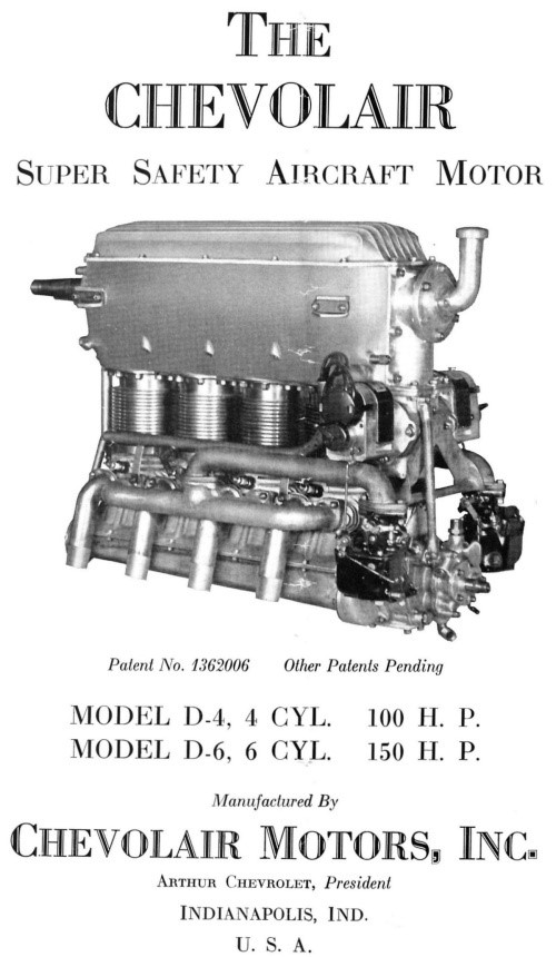 The Chevrolair was not – as is often claimed – a car engine adapted for aviation use. It was a purpose-designed aero-engine by the Chevrolet Brothers Aircraft Company. This engine was designed and Chevrolet Brothers