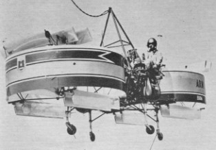In 1959, the U.S. Army, through its Trans¬portation Research and Engineering Command, initiated the development of three types of VTOL research aircraft in a programme aimed at pro¬ducing a flying jeep. Fundamentally a cross between an Army jeep and a reconnaissance helicopter, this type was intended ultimately to operate at speeds of about 50 mph a few feet above the ground, carrying a payload of about 1000 lb. Contracts were placed with the Chrysler Corporation, Acrophysics Development Corp¬oration and Piasecki Aircraft Corp¬oration.