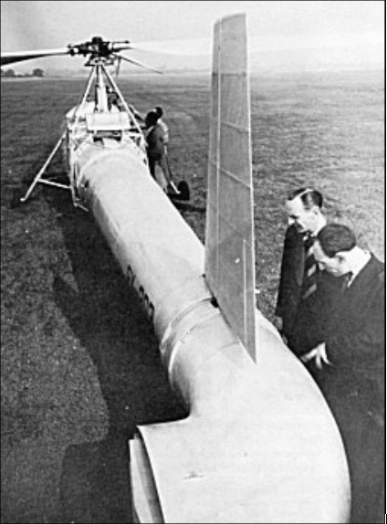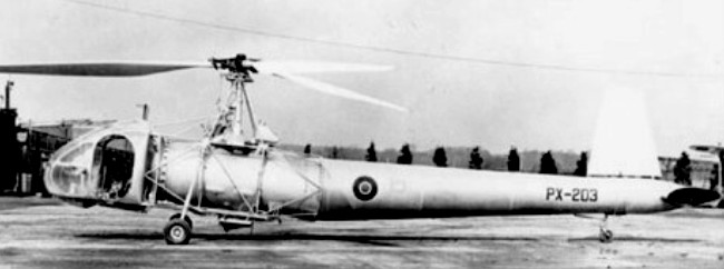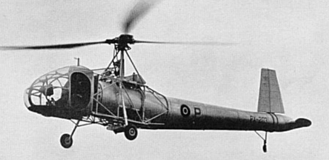 The W.9 was an experimental helicopter to E.16/43, with a three-blade main rotor. Torque compensation was achieved by a jet of air discharged from the port side of the rear fuselage and supplied by a fan which also cooled the engine. The jet was controlled by two vanes. The air from a multi-bladed fan which cooled the engine was ducted through the inside of the fuselage, heated by the exhaust gases and then ejected through an opening on the port side. Two horizontal shutters controlled the flow of this air. The controllable efflux was also used to impart turning movements to the rotorcraft, which had neither fin nor rudder. The multi-bladed variable-pitch fan was coupled to the rudder pedals and thus provided yawing control.