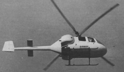 Two prototypes were built, using Rolls Royce Continental O 300 engines of a nominal 145 bhp each. Designated CR.LTH-1 (otherwise known as the CR-Twin) and the first aircraft, G-AWRP, first flew in 1969 followed by G-AXFM (GB-2) later that year, and a third pre-production machine, G-AZAU (GB-3) in mid-1971. This latter aircraft was fitted with 210hp Continental IO-360-D engines, and the production variants were to be the CR.420 with 210hp Continental TSIO-360-A engines and the CR.640 with 320hp Continental Tiara T6-320 engines. These aircraft were used to demonstrate the practicability of the rotor and airframe, but the lower engine power actually avail¬able was inadequate to permit single engined flying. Test flights showed that the low speed handling was easier than with conventional helicopters (having a single main rotor and an anti torque rotor). No difficulties were encountered when engaging rotors in wind speeds up to 35kt. Adequate yaw control was available for normal helicopter manoeuvres, and no control difficulties were met in side¬ways flight at 25kt or in quick stops. A maximum speed of 90kt IAS was attained using less than maximum power, and full autorotation was achieved.