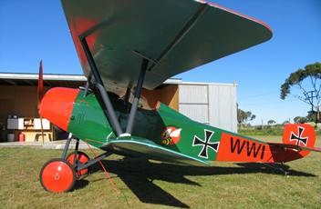 A variation of the Graham Lee designed 7/8 scale copy of the 1916 French Nieport 11 is the German copy by Seimens Schukert featuring lowered top wing and four point carbane struts. Rotax 503 powered