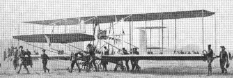 The next step was to build a full size piloted version of the glider. In December 1907, Cody began to build his first biplane at Farnborough, and since Nulli Secundus was rebuilding (to emerge as Nulli Secundus II the following summer) he was allowed to use her 50 h.p. Antoinette engine to power the machine of bamboo and wire. He arranged it to drive two pusher propellers; the result looked something like the Wright biplane.