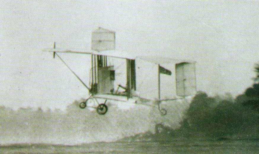 The Michelin Cup machine in which he flew 4 3/4 hours on December 31, 1910 to win the trophy. Clear differences to the earlier machine were the one large propeller installed at the rear in place of the two forward propellers and a 60 hp Green engine fitted in place of the ENV.
